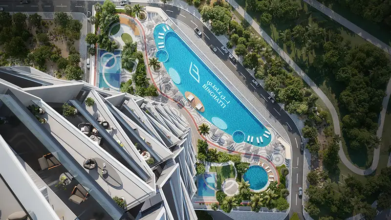 Binghatti Circle at JVC is a premium-class high-rise residential apex rising over 60 storeys, developed by Binghatti Developers. It offers exclusive studios, 1, 2 & 3-bedroom apartments, along with selected office and retail spaces. Being the tallest tower in Jumeirah Village Circle, this landmark redefines luxury with energy-efficient design, premium materials, and a unique architectural identity that symbolizes elevation and calm.