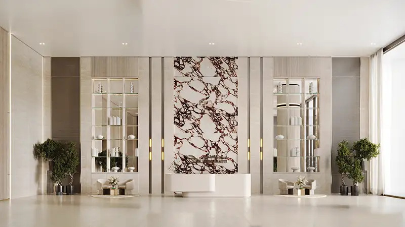 Interiors reflect refined luxury with marble, travertine, oak wood, antique brass, and glass finishes, blending elegance with functionality. Equipped with smart-home features and eco-friendly materials, each residence is designed for efficiency, sustainability, and comfort.