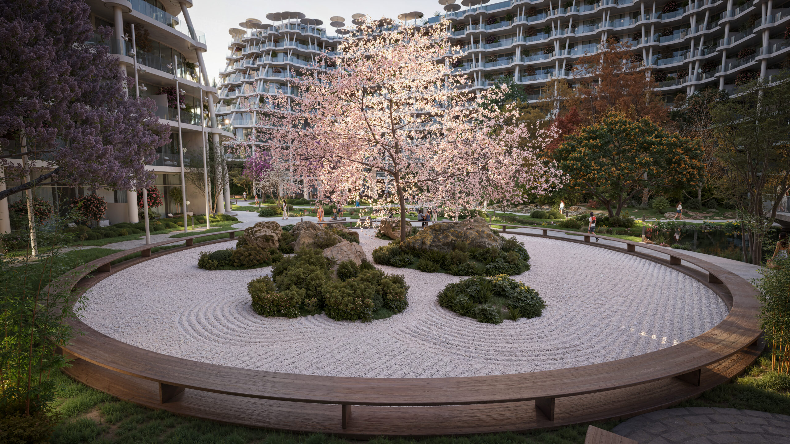 Sakura Gardens by HRE is a resort-style residential sanctuary designed around Japanese minimalism, natural harmony, and wellness-focused everyday living. Spread across 49,000 sqm of land with 127,500 sqm of refined residential space, the community features four low-rise buildings—A, B, C, and D—crafted with soft organic architecture, shaded pathways, lush courtyards, and a central 30,000 sqm green park.
